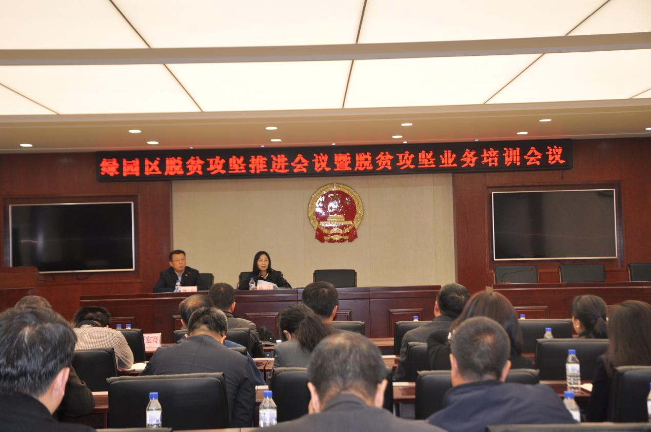 11月10日,绿园区召开脱贫攻坚推进会议暨脱贫攻坚业务培训会议。市发改委副主任杨萍为全区扶贫一线干部进行了精准扶贫政策解读,区委常委、常务副区长李瑞参加会议并讲话。
