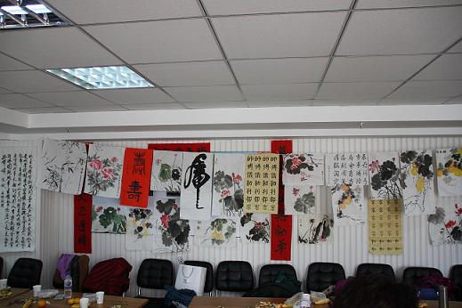会前两个班的学员都把自己的书法和国画作品展示在了教室的“学习园地”上,通过作品展示,学员们欣喜地发现,通过在老年大学一年的学习。自己在书画方面的显著进步。班会正式开始后,同学们争先恐后的登台亮相,展示自己的才艺风采,授课老师与班主任也都登台表演节目,为班会助兴。师生同台演出,载歌载舞,其乐融融。伴随着优美动听的旋律,师生们翩翩起舞,在欢声笑语中,这些老年朋友似乎年轻了。这一刻,他们忘记了年龄,只是让歌声乘着金色的翅膀飞翔,在金秋里燃烧生命情系夕阳;这一刻,他们感受到了秋的气息,感受到了是收获的季节。师生同台放声歌唱,从心底里放飞出老年人对美好的生活的热爱和向往。 |