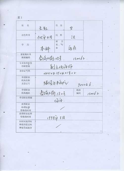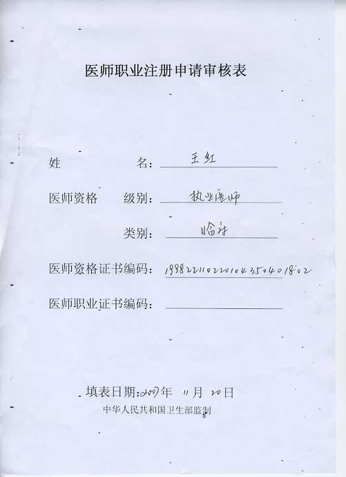 医师职业注册申请审核表(样表) (卫生)