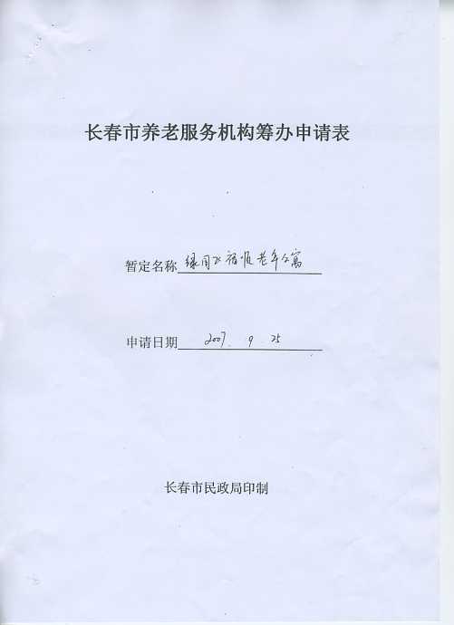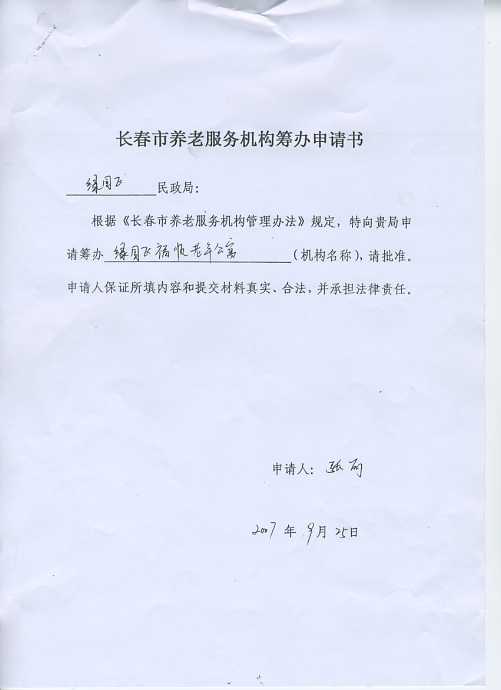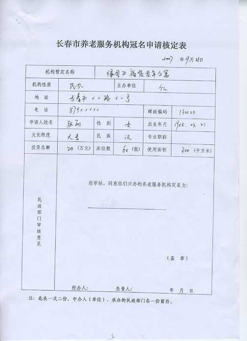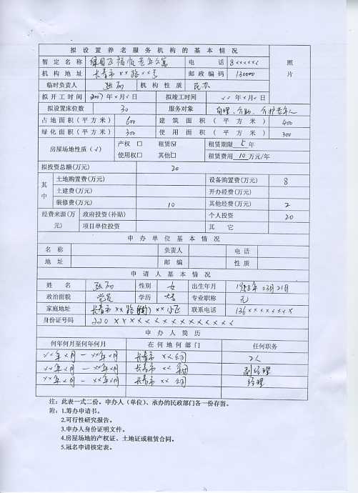 长春市养老服务机构筹办申请书(样表)
