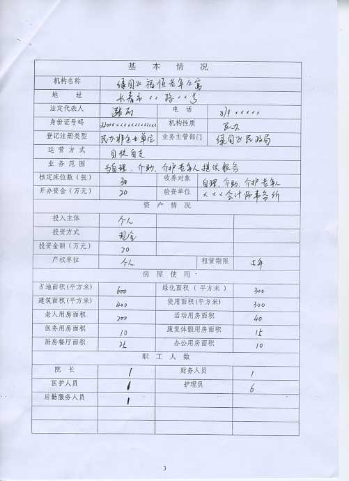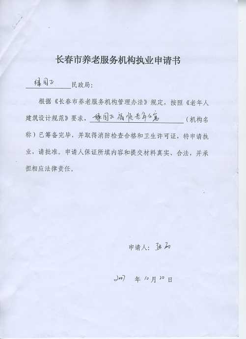 长春市养老服务机构职业申请书(样表)