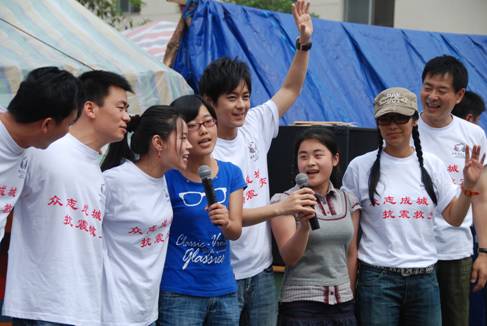 腾讯娱乐讯:5月25日至27日,由中国扶贫基金会组织的明星义工濮存昕、郭蓉、林志颖、王宝强、韦唯、赵义等人,赴四川地震灾区与来自全国的心理学家们汇合,来到聚源小学、洛河中学、什邡中学等地慰问老师和同学们,并给他们送来文具等物资和文艺节目,给学生们带来欢乐并为即将高考的同学们打气。 赶上余震 明星义工们到达第一个学校聚源小学时,刚好赶上青川发生6。4级余震,但因为现场的气氛过于热烈,明星和同学们都没有什么感觉,之后才从短信和电话的询问中得知这个消息。 天生我才必有用 在26号在什邡中学的教室里,当郭蓉在鼓励同学们不放弃,努力学习,报效国家时,濮存昕一直侧头倾听,并回头在黑板上疾书“天生我才比有用??李白语录”,生动地鼓励同学们,为他们打气。 多难兴邦 来自四川南充的歌手郭蓉一直在和同学们的互动中用自己的亲身经历重复着温总理“多难兴邦”这四个字,她说,现在的经历对于你们的未来一定都是财富,有这么多人帮助你们,你们将来肯定能成大器,你们一定要报效祖国,为四川争气! |