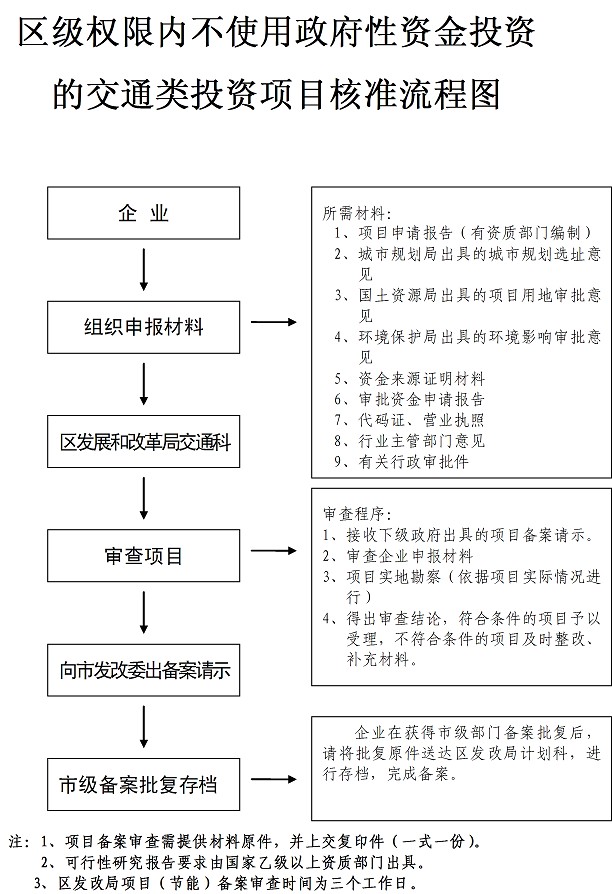 区级权限内不使用政府性资金投资的交通类投资项目核准流程图