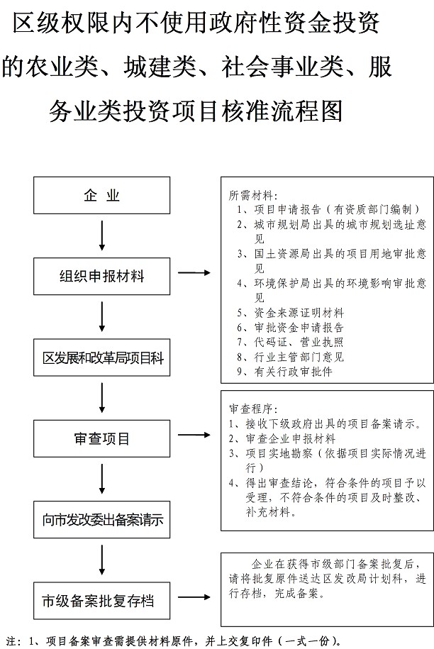 区级权限内不使用政府性资金投资的农业类、城建类、社会事业类、服务业类投资项目核准流程图