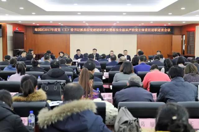 近日,绿园区召开2017年度党(工)委书记抓基层党建述职评议暨落实全面从严治党主体责任述职述责会议,区委书记程宇同志主持会议并讲话。 会上,各镇、街道、开发区党(工)委书记,区直机关党工委书记,区非公企业和社会组织党工委副书记分别述职述责。程宇同志代表区委逐一进行点评,并就深入学习贯彻落实党的十九大精神,推动新时代全区基层党建工作向更高层次、更高水平迈进作出安排部署。 程宇强调,要以新思想统领新实践,坚持以习近平新时代中国特色社会主义思想统揽基层党建工作全局,坚定不移地把政治建设作为第一要务、把大抓基层作为第一导向、把满足群众需要作为第一追求、把压实意识形态责任作为第一责任。要以新招法破解新问题,紧盯基层党建工作薄弱环节持续用力、久久为功,着力解决基层组织功能发挥不到位不完善、推进基层党建不平衡不充分、党风廉政建设不严不实不深入等瓶颈问题。要以新动力开启新征程,努力推动全区基层党建全面进步、全面过硬,做到以学习创新为根本、以组织创新为基础、以载体创新为抓手、以服务创新为核心、以机制创新为驱动。要以新作为担当新任务,全力营造抓基层党建优质高效工作氛围,在强化主体责任、细化责任分解、全力抓好落实、严格督导问责上下功夫。 市非公企业和社会组织党工委副书记李里同志、市委组织部组织二处处长李立权同志参加会议,李里同志作集中点评讲话,对绿园区基层党建工作给予了充分肯定,指出了工作中的差距和问题,并提出建议和希望。 会议结束前,参会人员对12名党(工)委书记进行了测评。区委常委,区委党建工作领导小组成员,以及部分来自基层的“两代表一委员”和其他党员干部、群众代表参加会议。