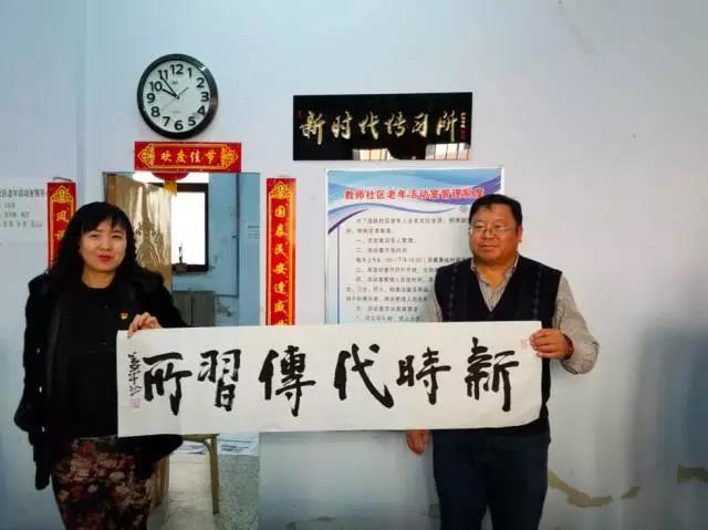 教师社区在新时代传习所搭建起了“笔墨飘香话十九大”的平台,邀请吉林省老年大学书画研究会会长周国军及会员代表十余人,与社区书法绘画爱好者共同开展“挥毫传十九大、翰墨抒情怀”活动。