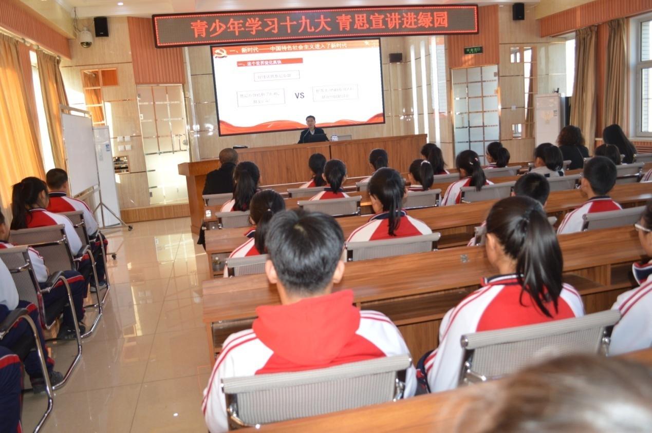 值此19大胜利闭幕之际,为了更好的推动十九大精神进校园,深入学习习近平总书记系列重要讲话精神,切实增强青少年一代的先进性和光荣感,同时,也为了传达党对青少年一代的殷切希望和关怀,近日,团市委“青年学习十九大 青思宣讲到基层”活动走进绿园区锦程学校,锦程学校七年级全体师生参加活动。