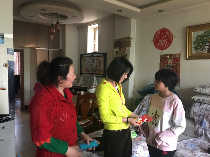 5月26日下午,志愿服务队到同心小学四年一班两名贫困学生家中进行走访慰问。在贫困学生家中,志愿者们为他们送上了1000元爱心助学金,赠送了学习用品和食物等节日礼物,为孩子们送去节日的问候,希望他们在学校健康快乐地学习、生活。志愿者们还详细询问了孩子们的学习、生活情况,鼓励学生努力学习,顺利完成学业;并关切地询问了学生家长的健康状况、家庭收入等情况,希望他们一家能积极向上面对生活上的困难,好好生活。