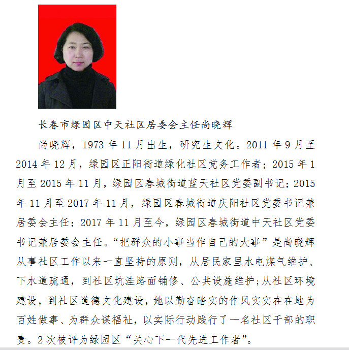 长春市绿园区民政局关于拟评选尚晓辉为“最美...